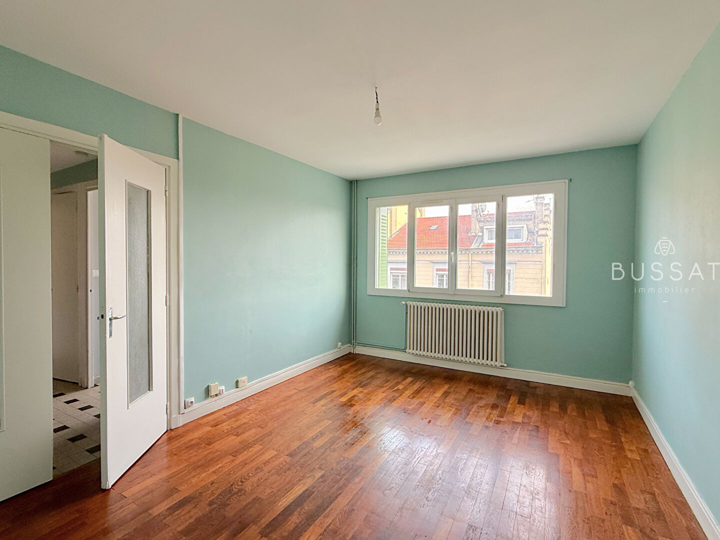 Le séjour parqueté s'ouvre sur une vue Est presque sans vis-à-vis, baignée de soleil dès le matin ; un vrai souffle d'énergie pour commencer la journée !